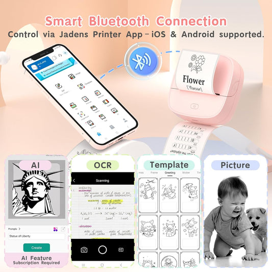 JD-23 Mini Thermal Sticker Printer Pink
