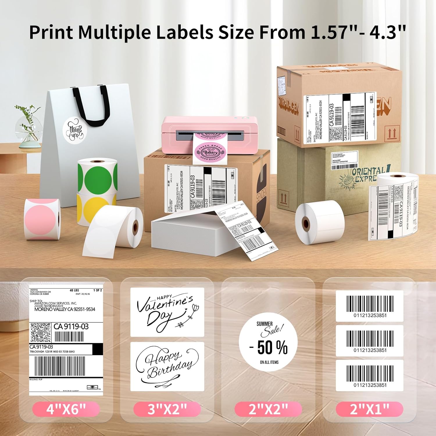 - Fast and Clear Thermal Printing for Multiple Label Sizes: Whether you need 4x6 shipping labels or smaller 2-inch and 3-inch labels, the Gloryang label printer delivers sharp, clear prints with fast printing speeds. It supports labels ranging from 1.57” to 4.1”, ideal for small business packages and shipping needs