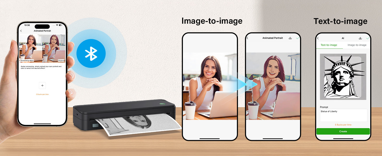 Support 8.5x11 US letter, A4, 4inch, and 2inch wide paper, with options for both roll and sheet paper. (Not compatible with Phomemo brand paper)