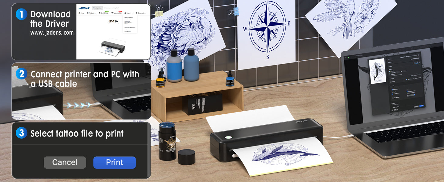 - High-Quality & Accurate Stencil Creation - Deliver crisp, clear stencils every time. The printer’s advanced technology ensures fine lines and high resolution, providing professional-grade quality that enhances the tattooing experience. Effortlessly create precise tattoo stencils in seconds. This printer eliminates the need for manual drawing, allowing artists to transfer intricate designs directly onto the skin with ease.