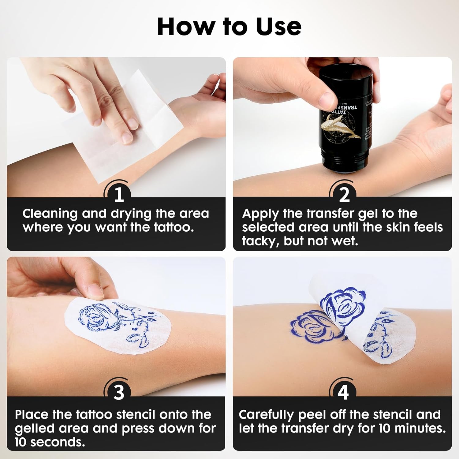 - Effortless to Use: A small amount of gel is enough to transfer the stencil with ease, saving you time and effort. Ideal for tattoos, body art, and temporary designs.