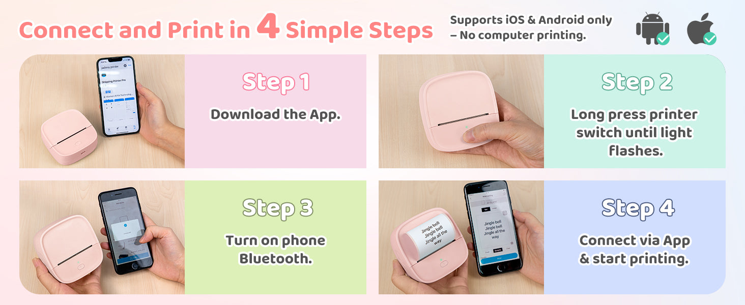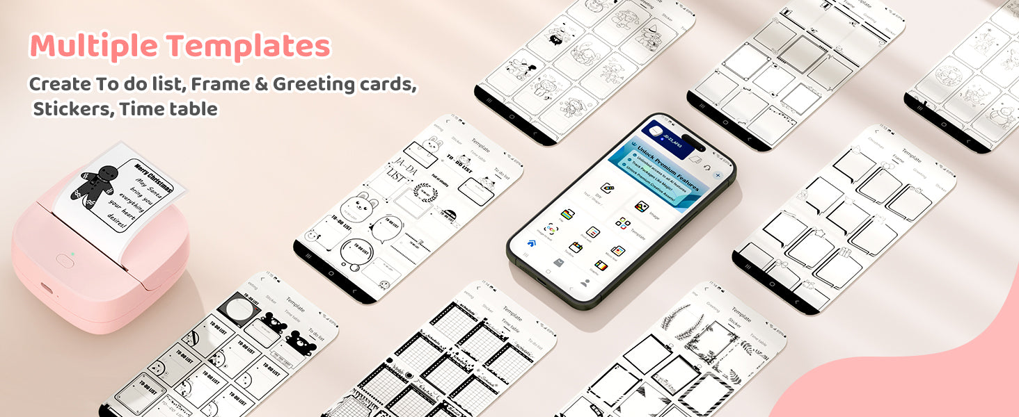- Smart App Control - Easily connect to your iOS or Android device through Bluetooth using the Jadens Printer App. The app provides a rich set of features: document and photo printing, QR code and chart generation, OCR text recognition, drag-to-resize editing, DIY drawings, AI-assisted image printing, and an extensive library of templates.