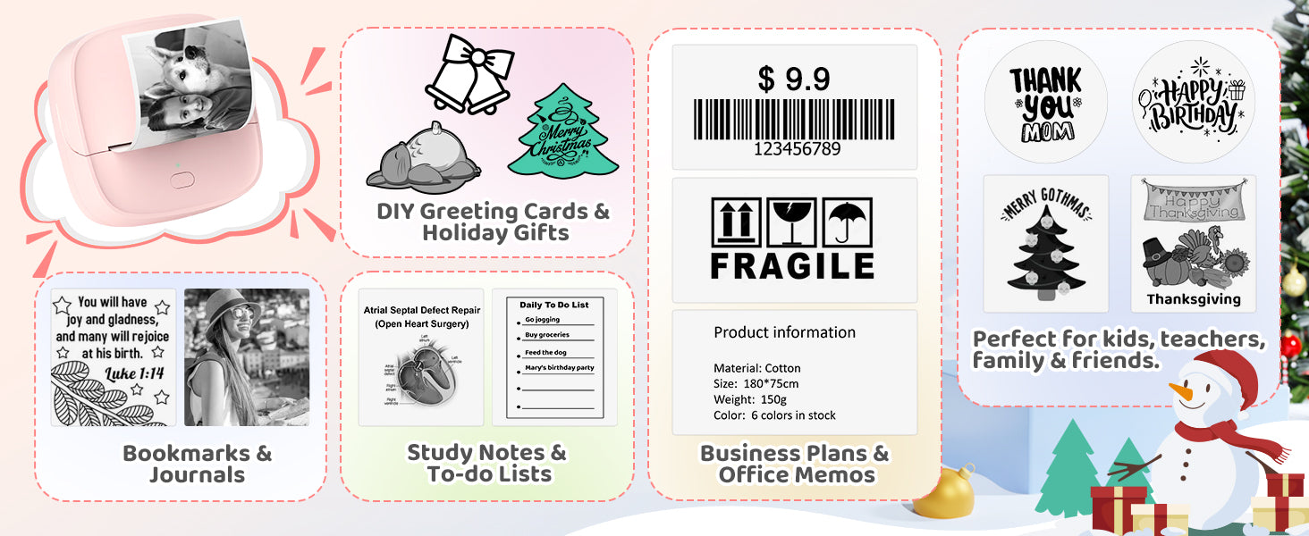- Versatile for Study, Work & Creativity - Designed for a wide range of uses—print study notes, teaching diagrams, to-do lists, receipts, labels, journals, and greeting cards with ease. It’s also perfect for kids, offering fun and educational applications such as alphabet learning, maze games, drawing, and creative DIY projects. Encourages productivity and imagination for all ages.