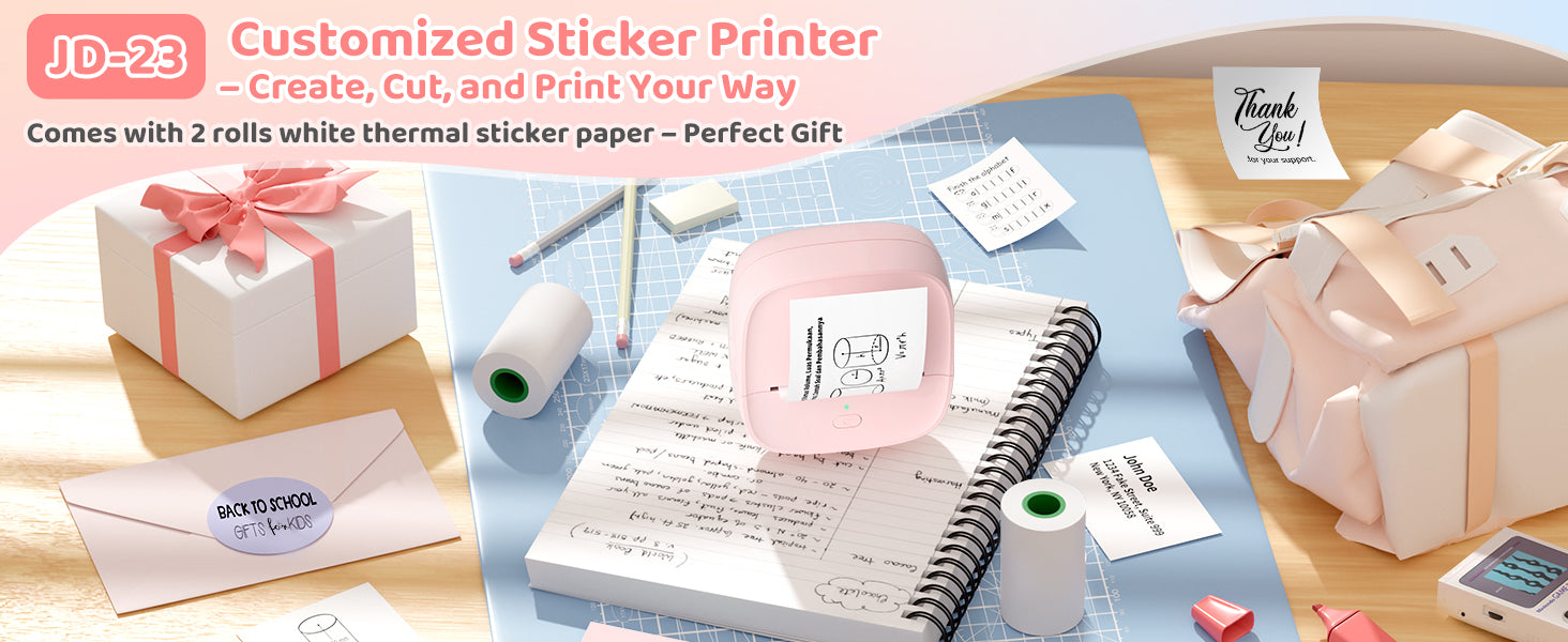 JD-23 Mini Thermal Sticker Printer Pink